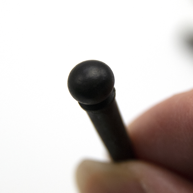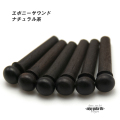 エボニー素材のシンプルな汎用ブリッジピンです。弦溝がないビンテージ仕様です。戦前の多くのギターには、弦溝のないブリッジピンが使われていました。音色についてはナチュラルで比較的甘いトーンが得られます。ブリッジピンには樹脂系素材もありますが、グレードアップには木材や骨材・角材をおすすめします。材質的には中級以上のギターに使用されています。