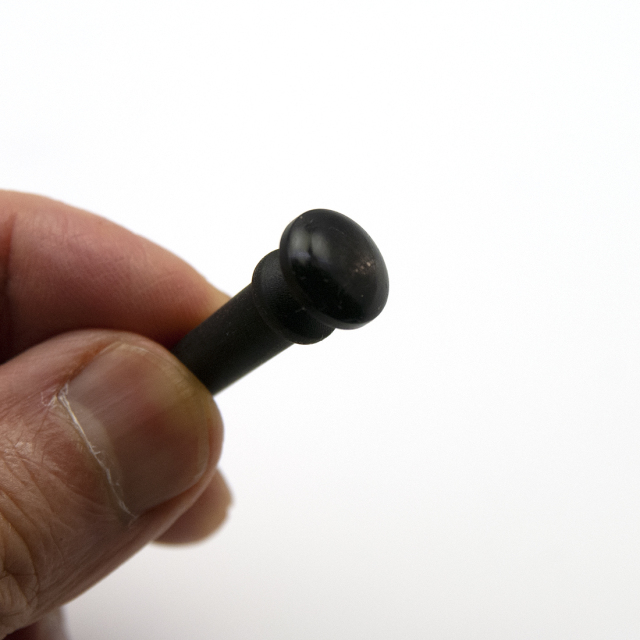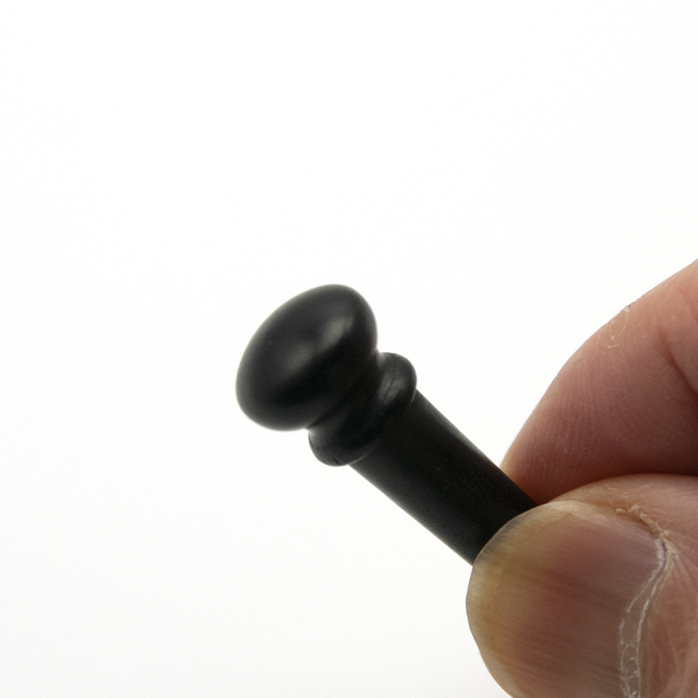 シンプルで飽きのこない、エボニーエンドピンです。どんなギターにもフィットします。ウッド感覚が渋いです。エンドピンの標準としてお奨めします。プラスチックのエンドピンと比較すると、グレード感がかなりアップします。エンドピンがプラスチックであれば、是非交換をしたいものです。あまり目立たないパーツですが、この際、こういう部分にもこだわってみましょう。アコースティックギターらしさには是非エボニー素材を基本として下さい。ドットのないタイプですので、ギターの装飾とのバランスはほとんど問題ありません。マッチングとしては、ブリッジピンに同材質のエボニーが使われている場合に、エンドピンもエボニーにするとベストなマッチングとなります。
