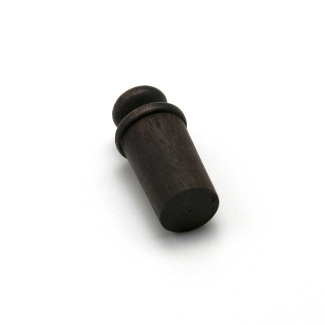 エボニーの太目エンドピンです。すでにジャック穴が空いているのを埋めることが出来ます。 プラスチックやメッキ製のエンドピンと比較すると、木のぬくもり感がでてグレード感がアップします。エンドピンがプラスチックやメッキ製でしっくりこなくて不満な方は、一度交換してみたいものです。あまり目立たないパーツですが、この際、こういう部分にもこだわってみましょう。 交換・取付けの際は穴の周辺がキズつかないように、マスキングテープなどを貼っておくと安心です。マッチングとしては、ブリッジピンに同材質のエボニーが使われている場合に、エンドピンもエボニーにするとベストなマッチングとなります。