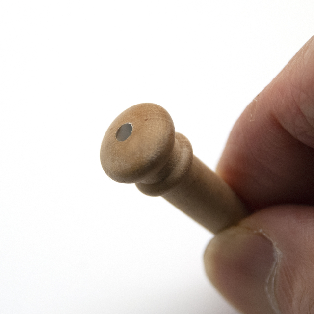 ボックスウッド材のぬくもりが感じられるエンドピンです。メキシコ貝ドットがアクセントで入っています。プラスチックやメッキ製のエンドピンと比較すると、グレード感がアップします。エンドピンがプラスチックやメッキ製でしっくりこなくて不満な方は、一度交換してみたいものです。あまり目立たないパーツですが、この際、こういう部分にもこだわってみましょう。マッチングとしては、ブリッジピンに同材質のボックスウッドが使われている場合に、エンドピンもブックスウッドにするとベストなマッチングとなります。