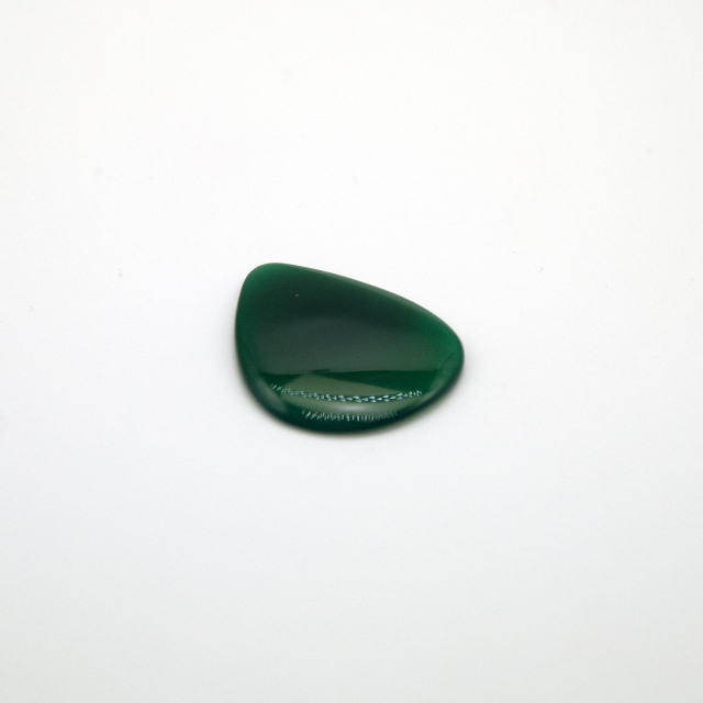 厚めのフラットピックで表はラウンド面、裏はフラット面です。材質はめずらしい「めのう」が使われています。適度な大きさで手になじみます。石の感じがおもしろいです。マニアックなフラットピックです。ピックコレクターの方にもお勧めします。天然素材を1つ1つ職人の手で仕上げられています。その関係で素材の石ごとに色柄が異なりますことをご了承下さい。