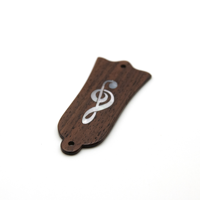 ト音記号のインレイを白蝶貝で入れた、手作りロッドカバーです。材質はインドローズです。ヘッドにアクセントを付けたい場合に向いた素材です。ヘッド部分に取付けるタイプで、ビス穴の間隔は約52mmです。交換の際、穴間隔が多少違っていても問題はありません。 尚、天然素材のため柄や色合いが写真と異なることがありますので、ご了承ください。